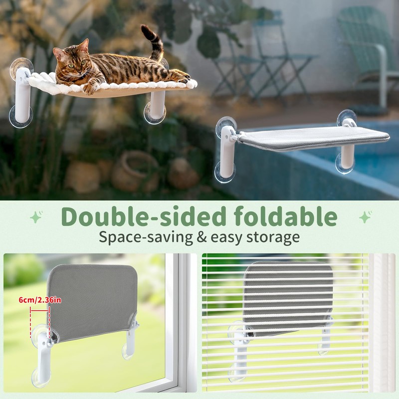 - Cozy Reversible Cover: Designed for year-round comfort, the dual-sided cover of our cat window perch features warm flannel for winter and breathable mesh for summer. It's zippered for easy removal and machine washable for effortless cleaning