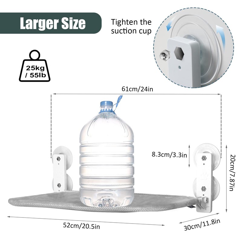 - Larger Space & Bearing Capacity: Our cat window perches measure 20.5*11.8 inches(52*30cm) and can hold large cats or even two cats. Supported by 4 upgraded strong suction cups and thicker steel frame, it is safer and more stable, holding up to 25kg