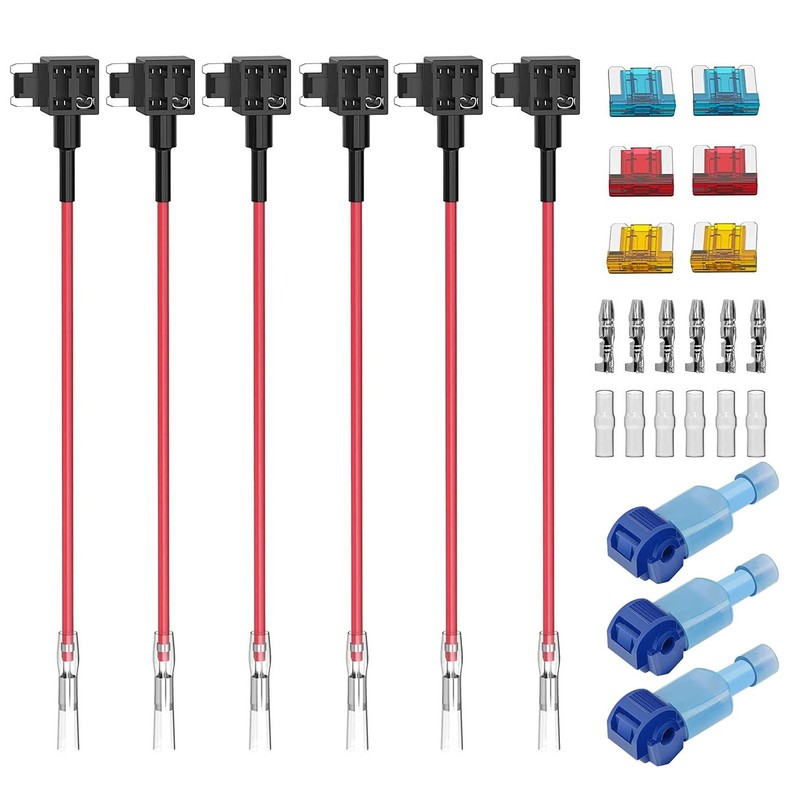 GUUZI Pack of 6 Low Profile Add-A-Circuit Fuse Adapters with Wiring Harness, ...