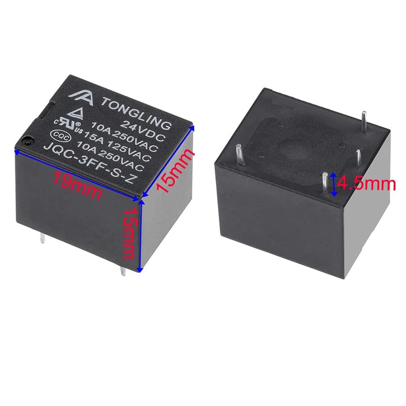 GUUZI Power Relay SPST PCB Type DC 24 V Coil 4 Pins Mini-Power Coil Relay JQC-3F SPST Pack of 10