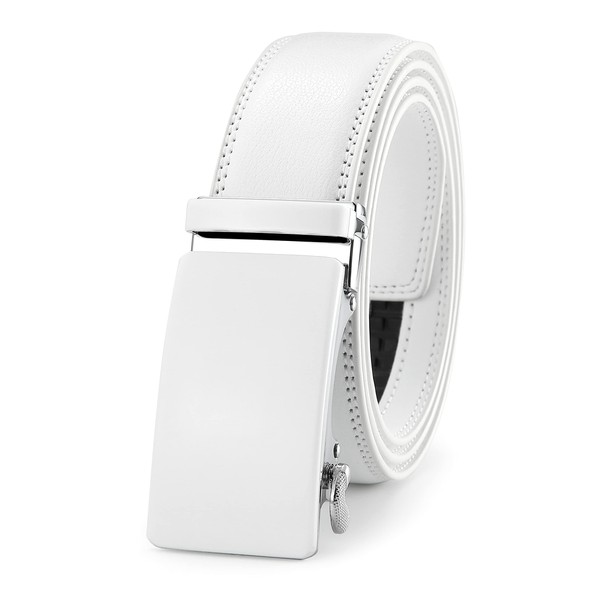 guvoosm Men's Leather Automatic Belt for Men Business Suit Belt 3.5 cm Width, White-002