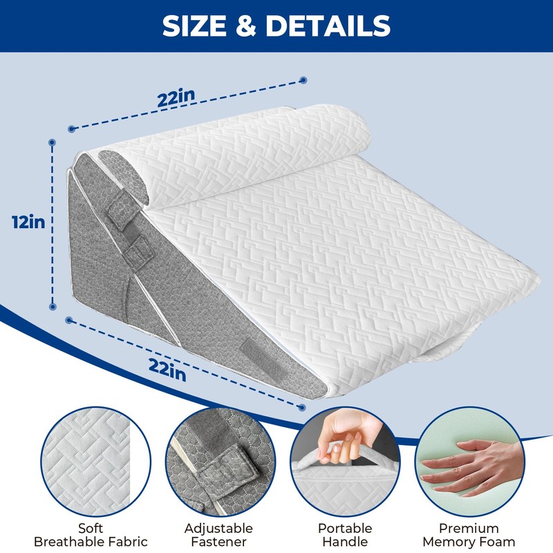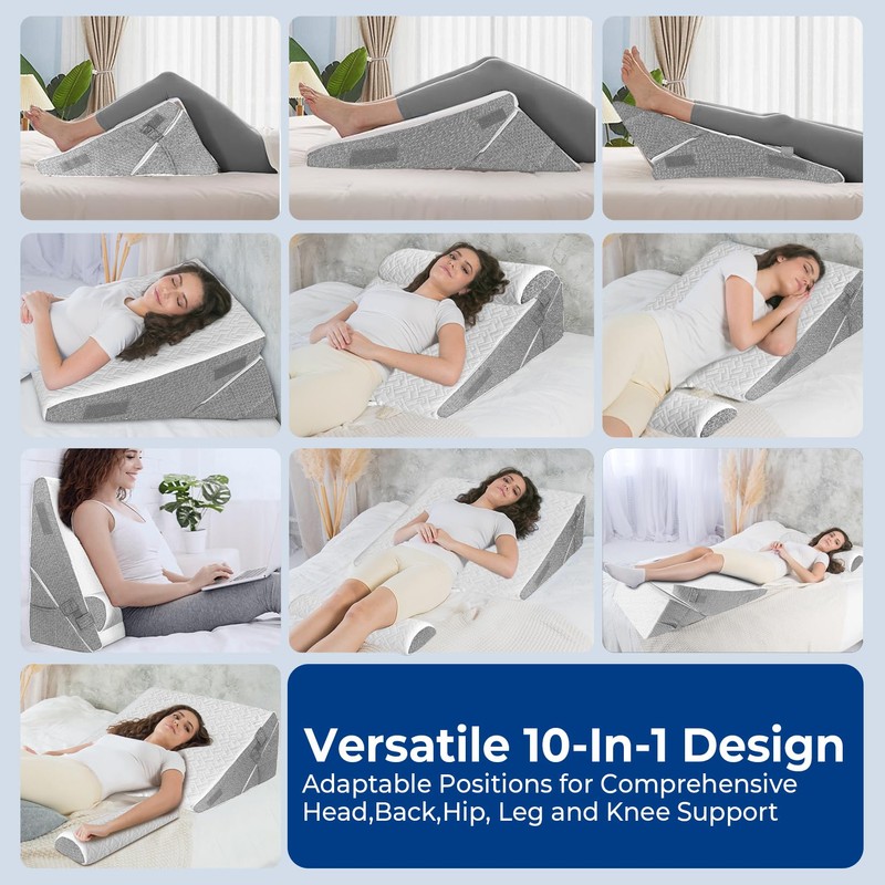 GUWELL Wedge Pillow for Headboard, Adjustable Bed Wedge Pillow Set with Orthopedic Memory Foam Neck Cushion