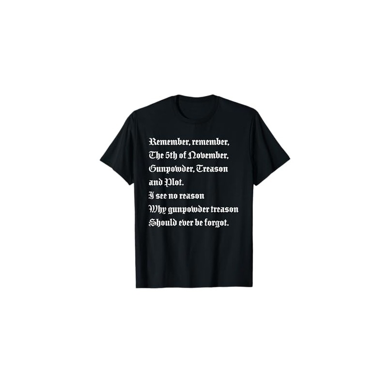 Guy Fawkes Remember, Remember The 5th of November T-Shirt, Small, Black