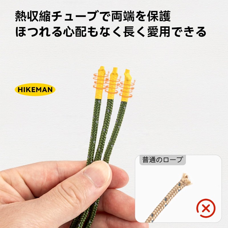 Guy Rope, Tarp Rope, Tent Rope, Camping Rope, Carabiner Included, 100% Nylon, High Load Capacity, 772.3 lbs (350 kg) or more, Reflective, Durable, Stylish, For Outdoor Use (Army Green, Diameter 0.2
