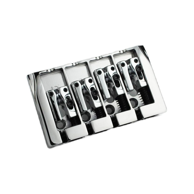 Guyker Bass Guitar Bridge, 4 String Fixed Bridges String Space 19mm Replacement for Jazz Bass or Precision Instruments (GB404, Chrome)