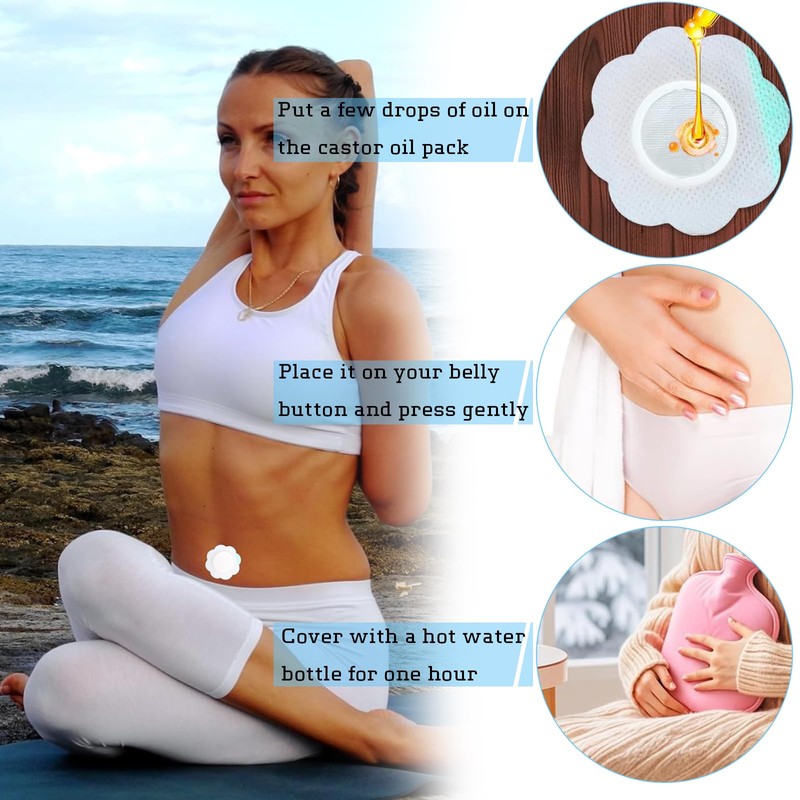 Guyode Pack of 50 Castor Oil Pack Good Breathability Castor Oil Belly Button Leak-Proof Design Castor Oil Patches Sterile Design for Shoulders Spine Waist Elbow Knee Ankle