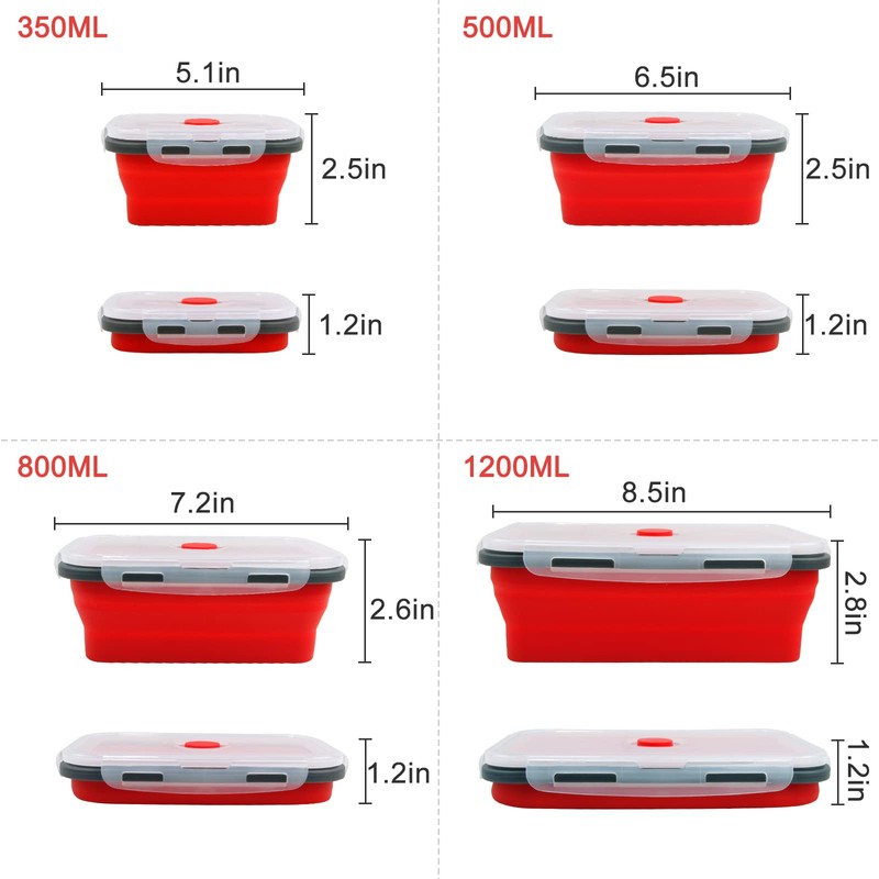 - Versatile 4-Pack for Every Meal Prepper: This set includes four collapsible food storage in sizes 1200 ml, 800 ml, 500 ml, and 350 ml. Perfect for keeping leftovers fresh, organizing your meal prep, or storing snacks.