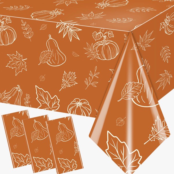 Guzbewu Fall Plastic Tablecloth,3pcs Thanksgiving Fall Pumpkin Tablecloth Waterproof Rectangle Fall Table Cover for Harvest Autumn Thanksgiving Party Decorations