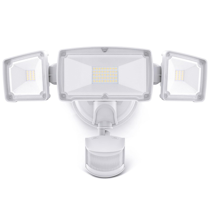 Gvcxk LED Motion Sensor Lights Outdoor Security Lights, Outdoor Flood Lights 6000K IP65 Waterproof,38W 4200LM 3 Head Outside Motion Detection Lights Exterior Lights Fixture for House Porch (White)