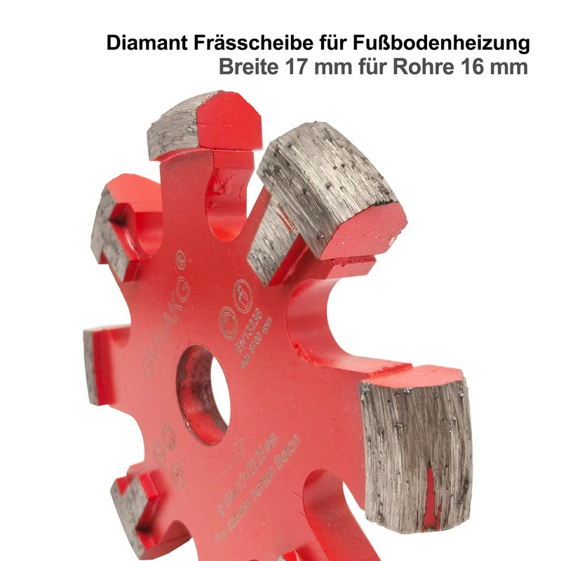 - Good balance: the discs are balanced for effortless, high-quality milling, the floor milling discs have a width of 17 mm (at 16 mm underfloor heating pipe, this is the standard)