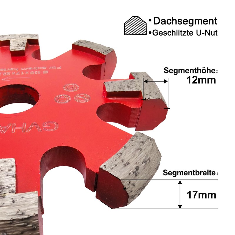 GVHAKG Diamond Milling Disc/Clearing Disc, 130 mm, 8 U Segments, 17 mm, for Underfloor Heating, Very Hard Screed, Very Hard Concrete Floors and Removal (130 x 17 x 22.23 mm)