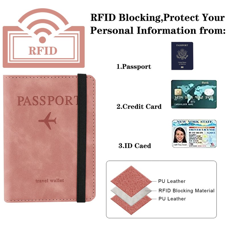 - RFID BLOCKING MATERIAL The passport wallet is made of RFID blocking material to prevent information leaks and theft, and protect your privacy.