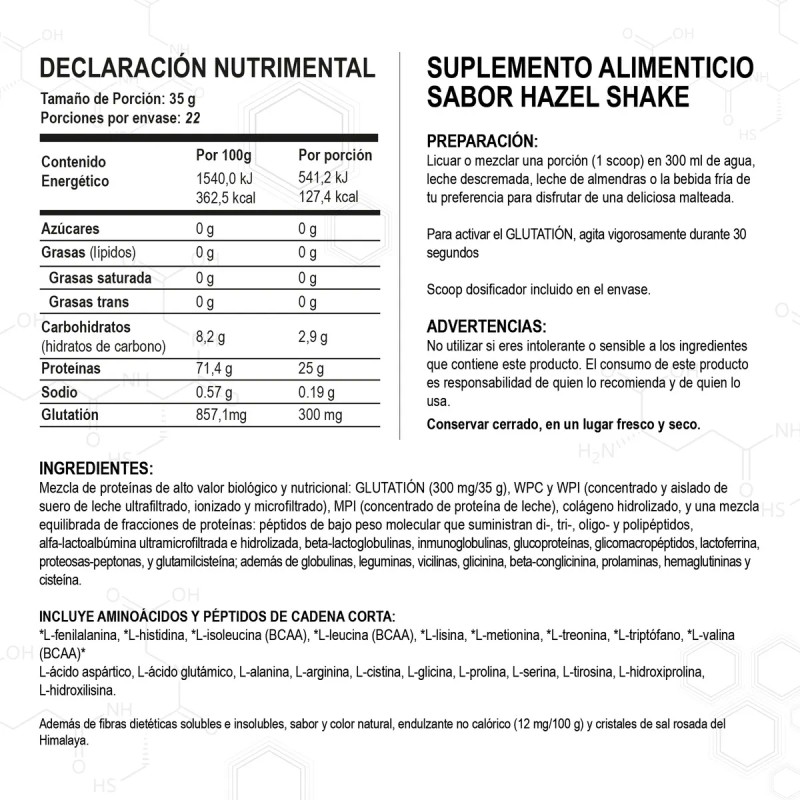 Gviveon Protena Premium En Polvo Con Glutatin ( Suplemento Antioxidante) Y Colgeno Hidrolizado. El Mejor Sabor En Protenas G Vive On Hazel Shake