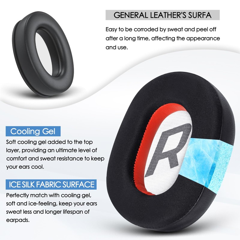 • ๐ˆ๐‚๐„ ๐’๐ˆ๐‹๐Š ๐…๐š๐›๐ซ๐ข๐œ: Designed to perfectly complement cooling gel, the soft and ice-like feel of our ear pads keeps your ears sweat-free. Compared with leather earpads, there will be no trouble caused by the peeling off of the leather.