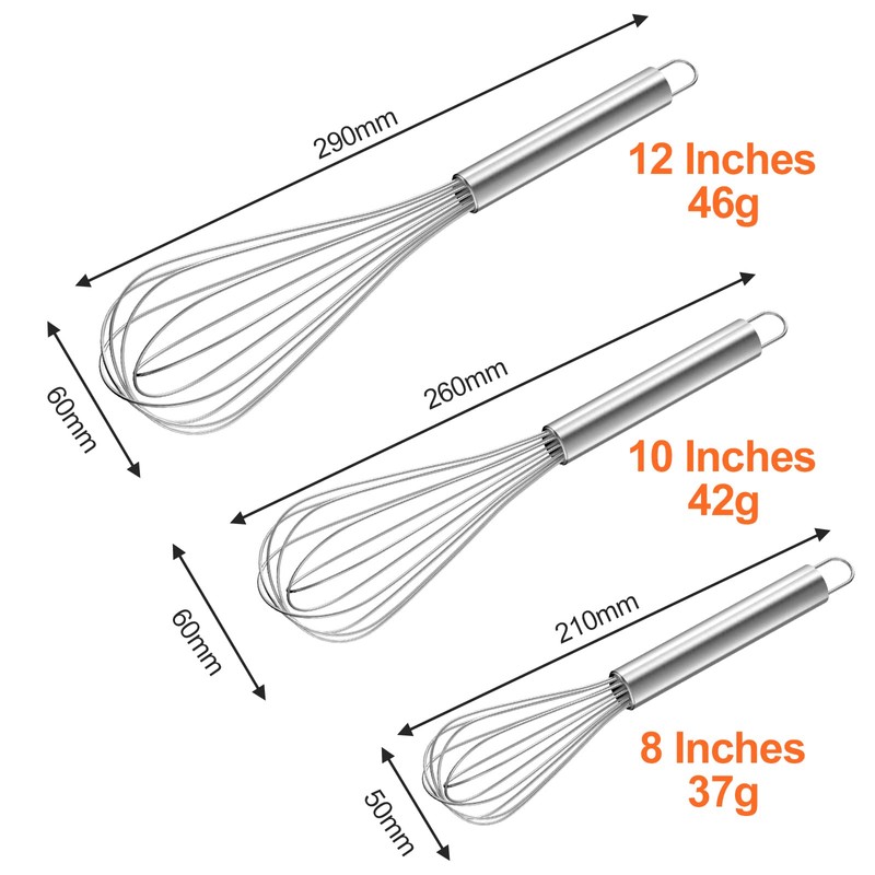 - Three-piece kitchen whisk set: the package contains 1 x 21 cm whisk, 1 x 26 cm whisk, 1 x 29 cm whisk, suitable for all cooking work in the kitchen.