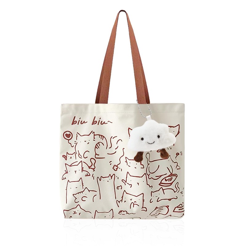 - Cute design: The cat canvas bag is based on beige, with cute cat patterns, stylish and simple without losing personality, bringing you a pleasant shopping experience. The cloud pendant can be hung on the canvas bag at will, adding a touch of agility to the bag.