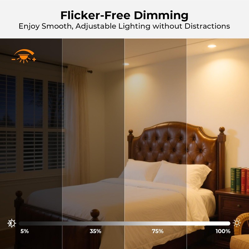 - Smooth Dimming from 10% to 100%: Fully dimmable design allows you to customize brightness to suit your needs. Compatible with most standard dimmers—ideal for both residential and commercial applications