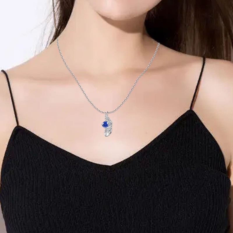 - Women's necklace blue stone: blue necklace women's with pendant feather design and 5A zirconia blue birthstone, is chain birthday gift for women who have a birthday in September. A fantastic gift also for yourself and also for your mother, mum gift, wife, girlfriend, mother daughter necklace, teenager girl gifts