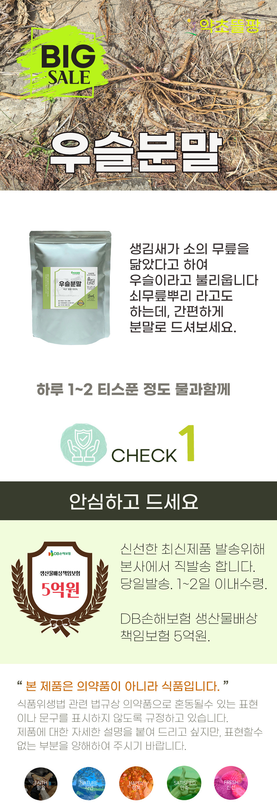 GW-약초뜰팡 국산 우슬분말 500g 쇠무릎뿌리 이중지퍼백