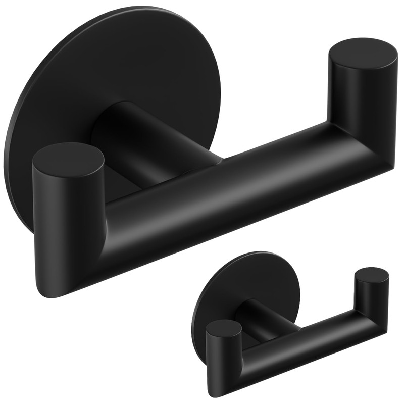 GWAAZXGZ 2 Pack Black Bathroom Hooks for Towels - Self Adhesive Double Hooks for Wall, No Drilling, Matte Finish, Strong Hold for Robes, Coats, Shower Use