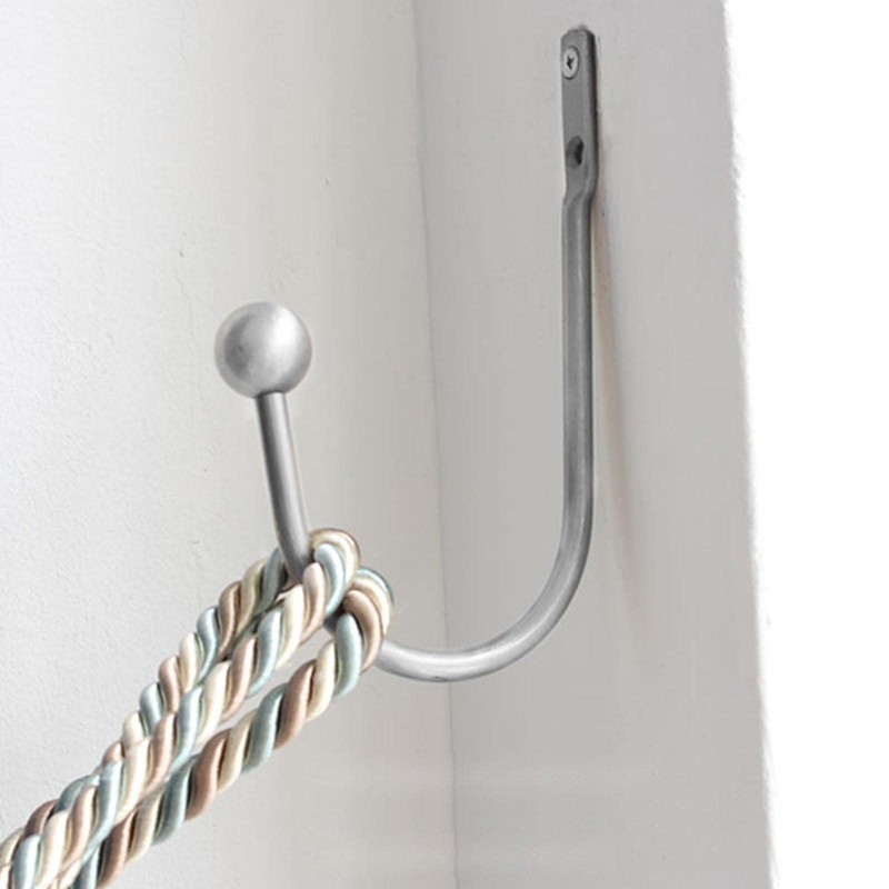 GWAWG 2 PCS Metal Curtain Holdback Decorative Curtain Drapery Holdbacks Arms Wall Mounted Curtain Tie Backs Drapery Holdbacks Hooks with Screws for Fixed Curtain and Hanging Clothes (Silver)