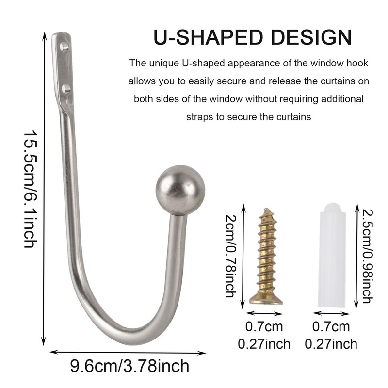 - U-shaped Unique Design: The window hooks are uniquely U-shaped, a look that allows you to easily secure and release the curtains on both sides of the window without the need for additional straps to secure the curtains.