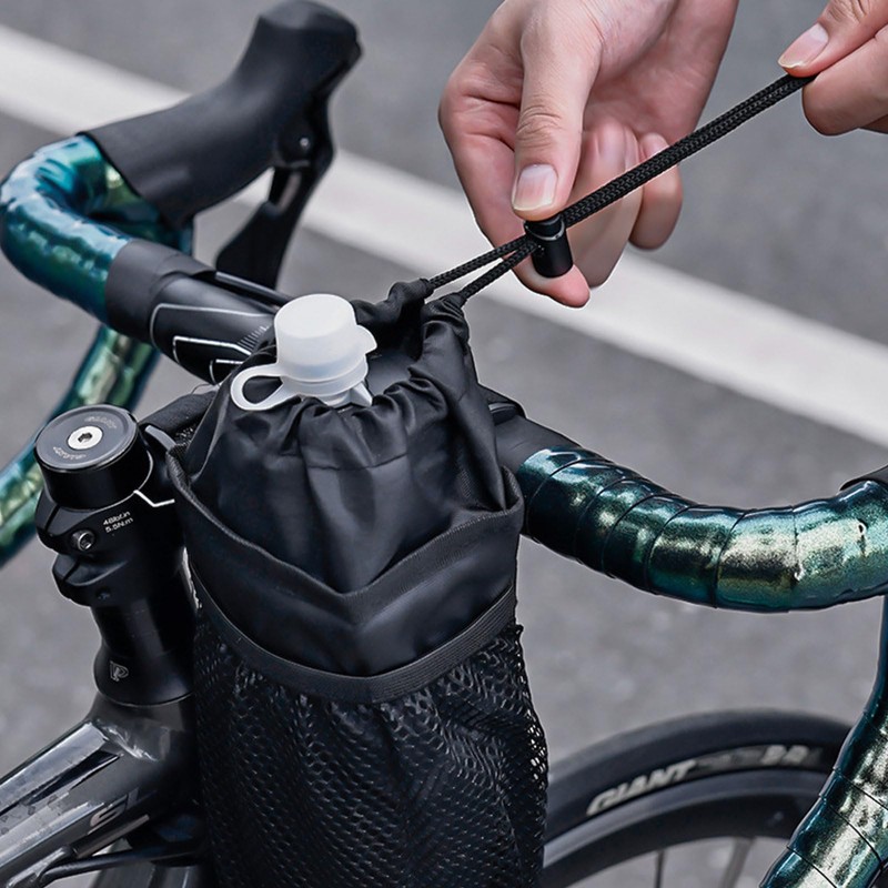- Unique Design:Water bottle carrier bag has a drain hole to prevent water accumulation on rainy days, ideal for sudden showers during outdoor sports or business trips. There’s a net side pocket for easy storage of your phone, tools, and energy bars. The motorcycle drink holder top - heightened design accommodates taller bottles, handy for short outdoor outings to hold more small items. Plus, a tightened drawstring keeps things stable and allows easy access to drinks, working perfectly for all - day cycling trips to secure your bottle while keeping it within reach.