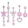 GWAWG 5 Stück Bauchnabelpiercing Set Rose Silber, Bauchnabelpiercing Chirurgenstahl mit Schmetterling & Herz, Bauchpiercing Schmuck für Damen, Fake Bauchnabelpiercing Geschenk Idee
