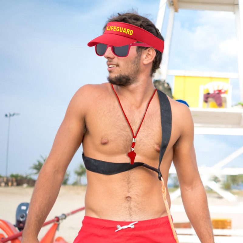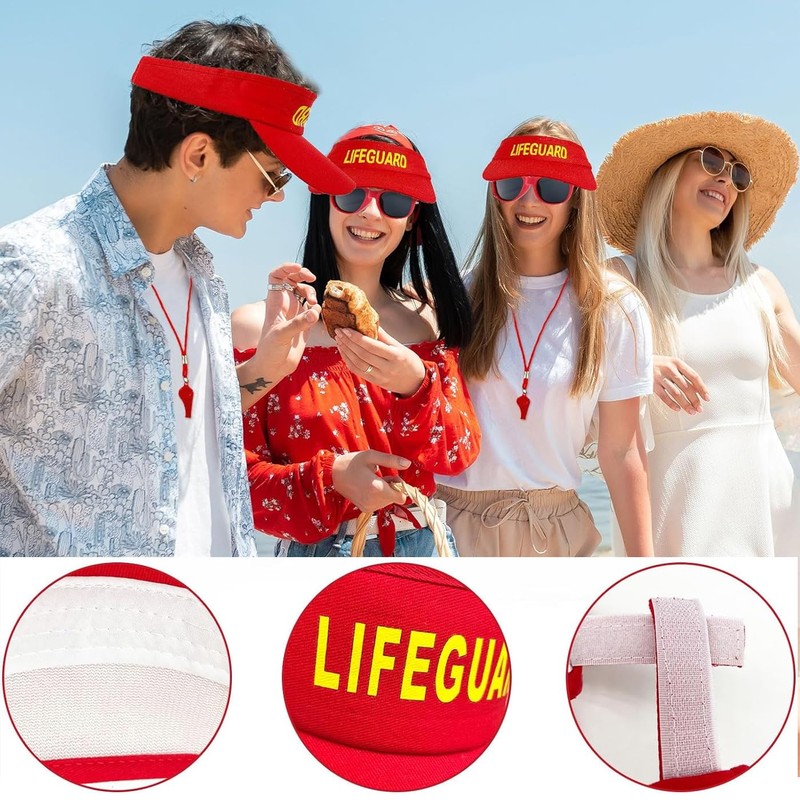 GWAWG Lifeguard Costume Set include Include Lifeguard Hat,Guard Whistle and Sunglasses,Lifeguard Accessories Red Adjustable Sunscreen HatsLifeguard Fancy Dress Costume for Adults Men Women Pool Party