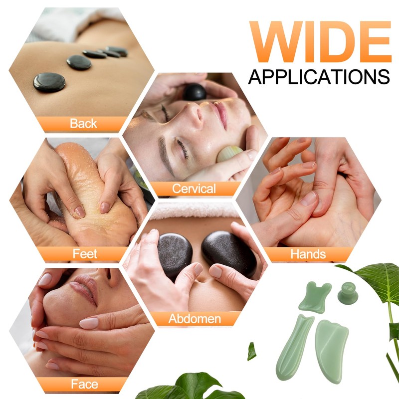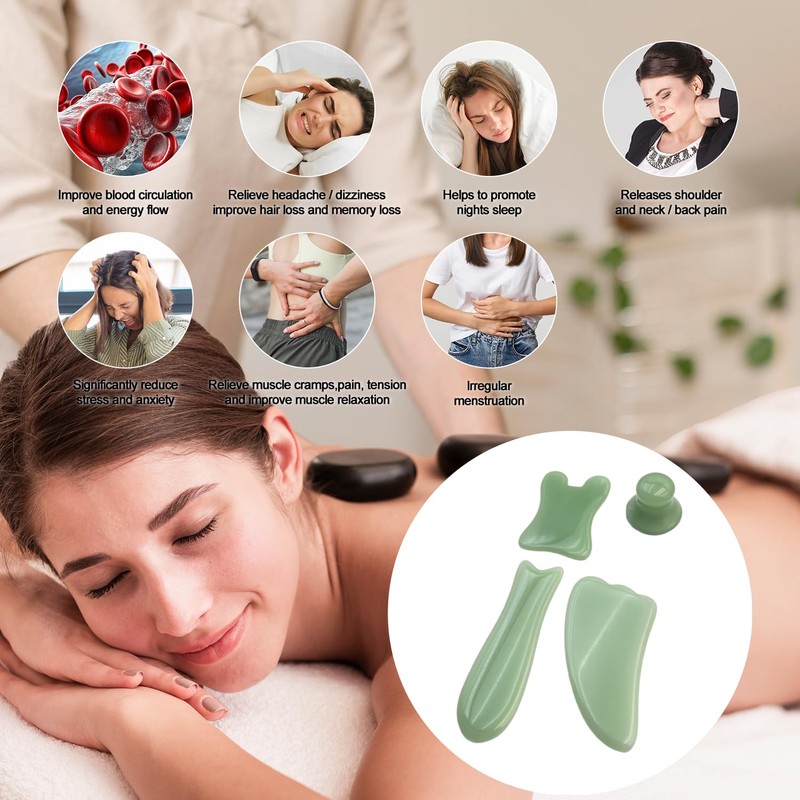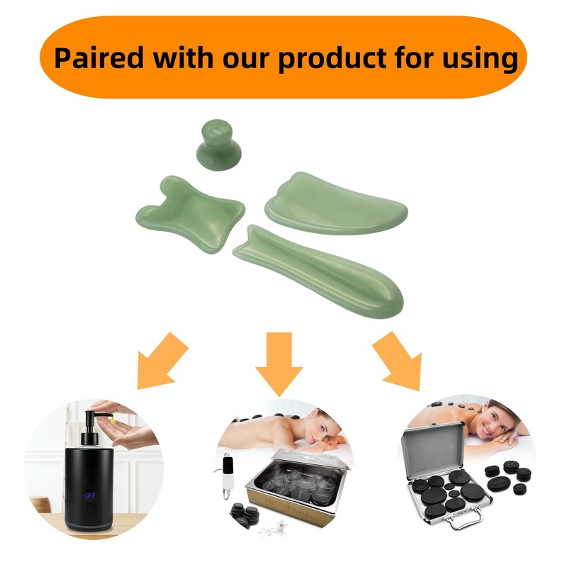 Gwboorsd 4 Stone Set Stone Massage Set for Oil Warmer Massage gua sha for Professional or Home Spa, Relaxing, Pain Relief, Light Green Style