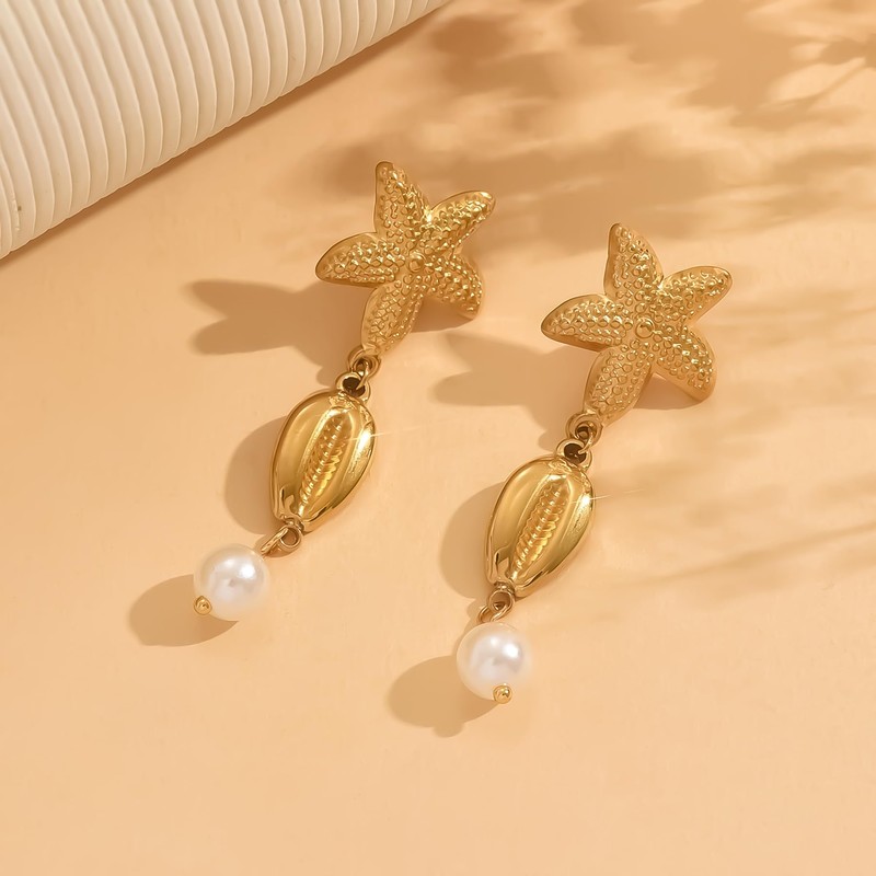 Gweqou Dangle Earrings for Women 18K Gold Plated Delicately Designed Earrings Hypoallergenic Elegant Pearl and Cubic Zirconia sunflower ocean Jewelry Present