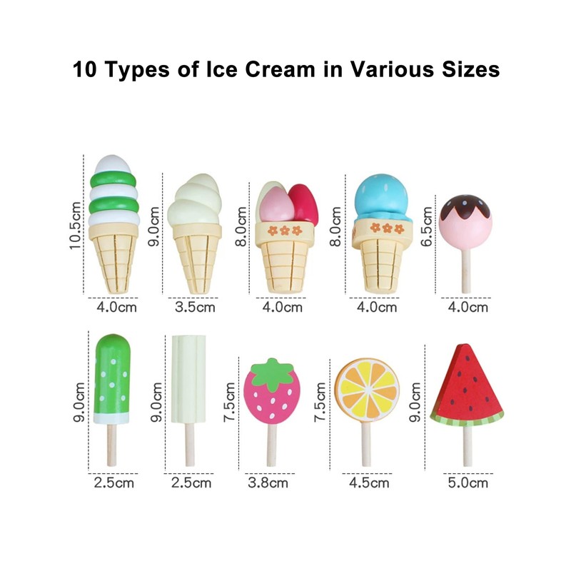 • Set contents: includes 6 different types of ice cream with unique and realistic design, providing the children with an enriching playing experience.