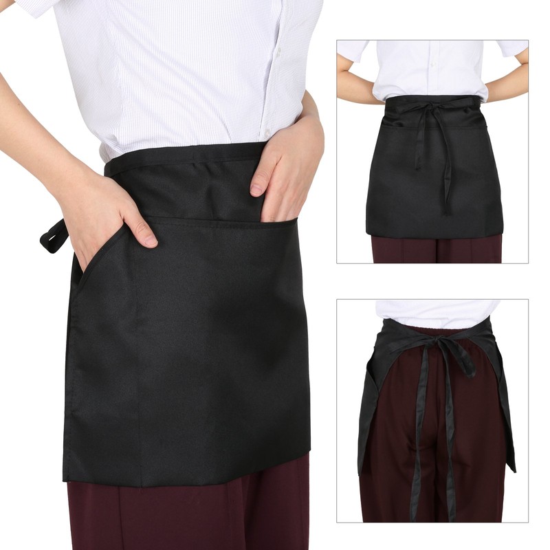 GWHOLE Schürze Kochschürze Bistroschürze Halbschürze 62,5 x 44,5 cm Schwarz