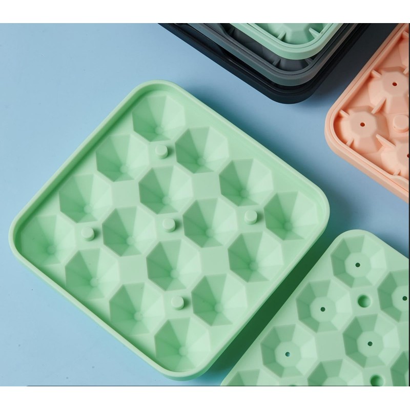 Gwindrise Tiny Diamond Ice Molds Fun Shapes 2 Pack, Small Diamond-Shaped Silicone Ice Cube Trays 16 Cubes Per Tray, Easy Release, BPA-Free and Stackable, Mini Ice Cube Trays with Lid Green