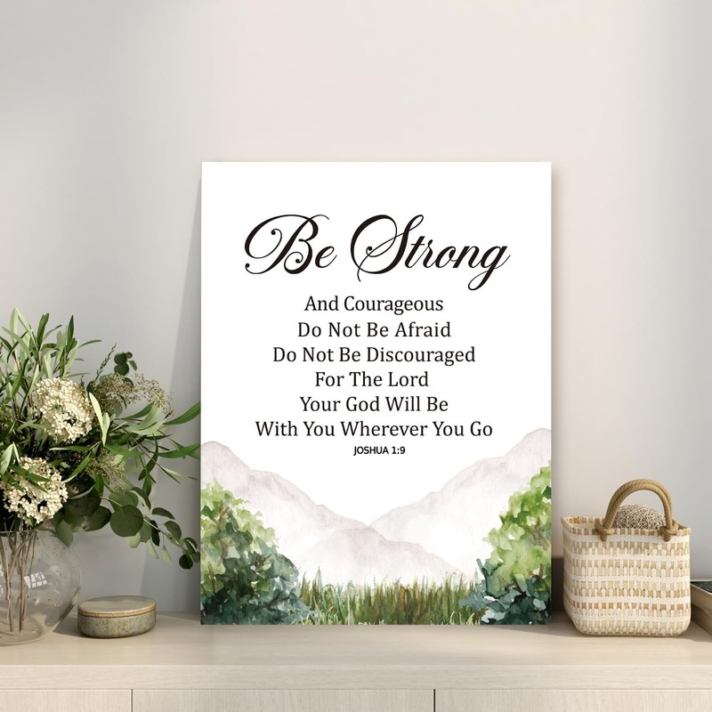 Gwisml Be Strong And Courageous Inspirational Bible Verse Canvas Wall Art,Joshua 1:9 Motivational Scripture Print Painting Artwork for Christian Home Office Bible Verse Wall Decor