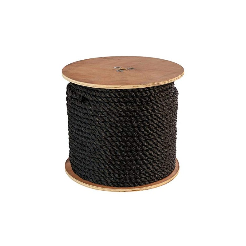 GWP 58 x 600 3 Strand Black Polypropylene Rope (5,580 lbs. Tensile Strength). Polypropylene is a lightweight and strong general-purpose rope. It is rot proof and unaffected by water, oil, gasoline, and most chemicals. Polypropylene floats yet it is twice as strong as manila. Our regular film polypropylene rope is made with a medium lay, allowing for easy splicing.