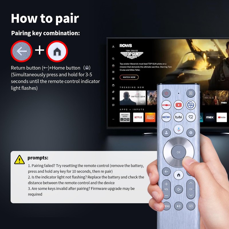 - 【Premium Performance & Google TV Integration】The advanced infrared technology maintains strong connectivity.Pairing method: Press the back button and home button simultaneously to activate pairing. Enjoy seamless control of your Mini-LED ULED 4K Smart TV just like the original remote.