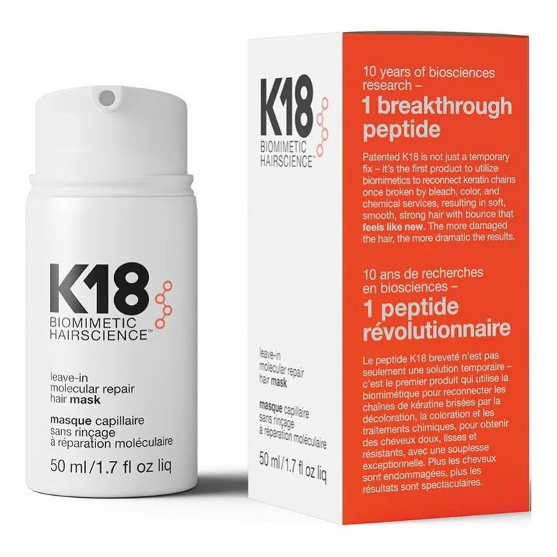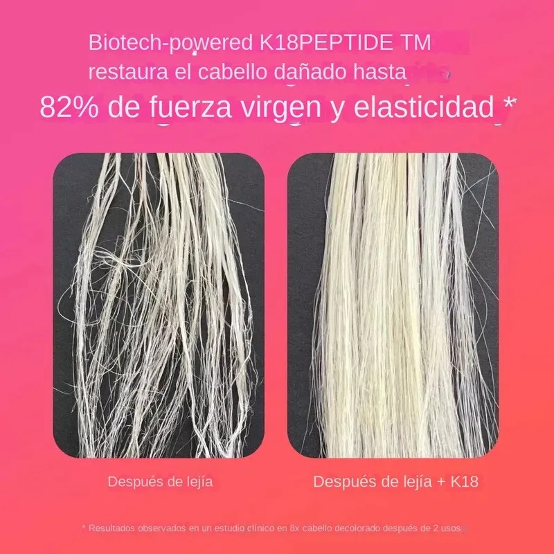 La K18 Leave-In Molecular Repair Mask es una mascarilla capilar sin enjuague desarrollada con tecnología biomimética de última generación que reconecta las cadenas de queratina rotas en el cabello desde su núcleo 🧬💥.