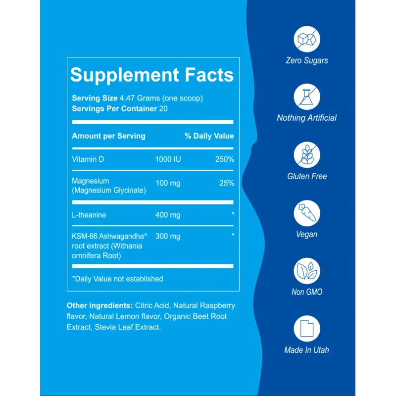 MEJORA TU EXPERIENCIA DE SUEÑO: Dale la bienvenida al sueño rejuvenecedor que tu cuerpo anhela. Nuestro sabor a Frambuesa y Limón ofrece algo más que sabor: contiene ingredientes como el Tomate Borracho Sudafricano KSM-66, L-Teanina y Glicinato Quelado de Magnesio, cada uno de ellos seleccionado por su asociación con la mejora de los patrones de sueño. Disfrute de la posibilidad de conciliar el sueño más rápidamente, permanecer dormido de forma constante, descansar más profundamente y despertarse renovado.