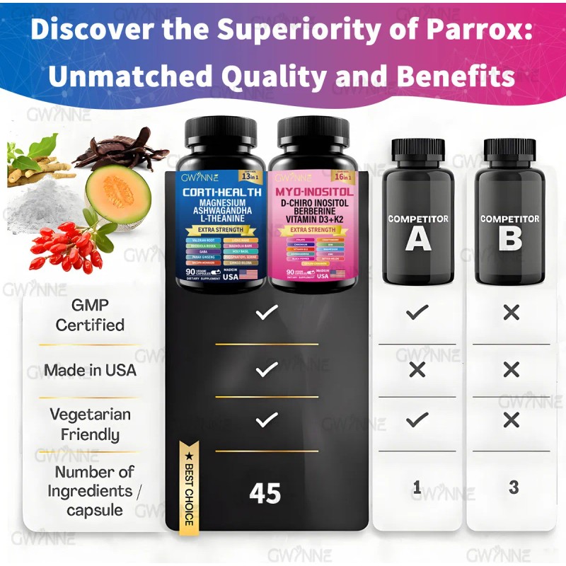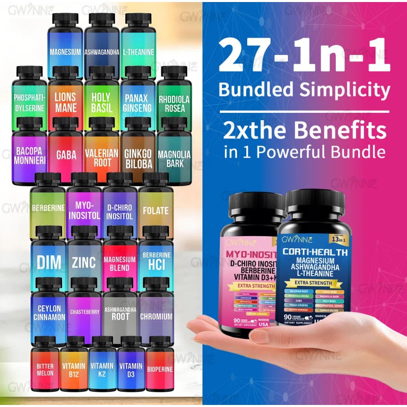 🌟 ⭐ Gwynne Suplement De Inositol Myo-inositol Y D 90 Cápsulas + Suplemento De Cortisol 90 Cápsulas,con Glicinato De Magnesio,vitamina B12 Y K2 ⭐ 🌟