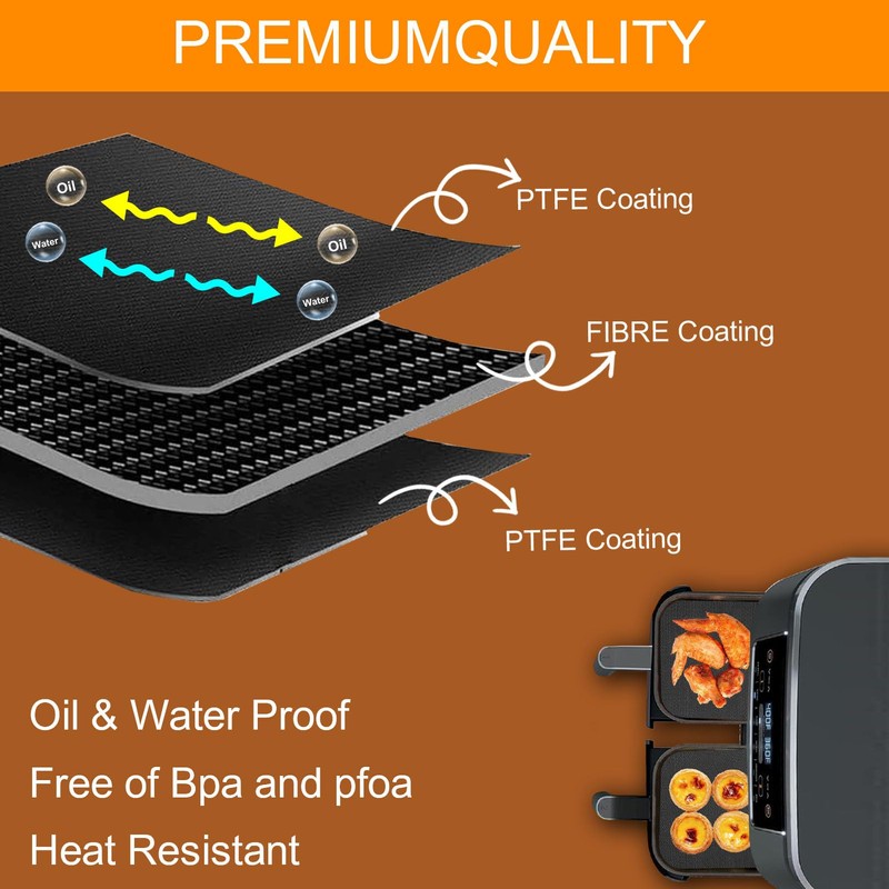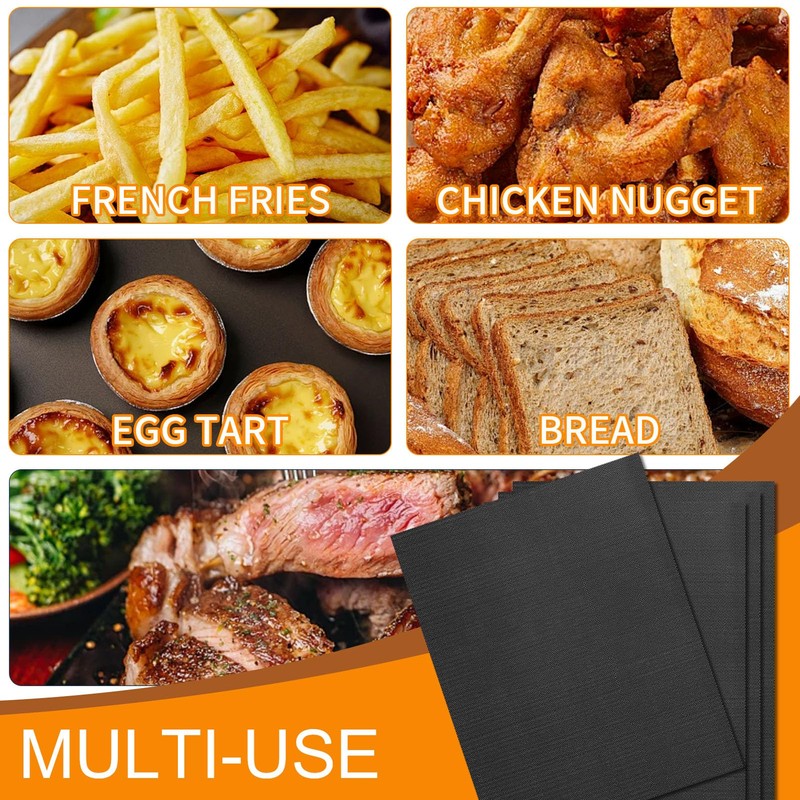 ->Enhance your air fryers/ovens with our premium Glass Fiber Baking Mat. Designed to fit these appliances perfectly, this mat is ideal for baking and frying.