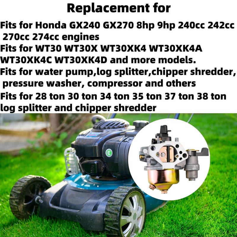 - Compatible with: GX 240 Carburetor for compressor, water pump, pressure washer, log splitter,Chipper shredder, for many 3800 psi 4000 psi pressure washer, 28 ton 30 ton 34 ton 35 ton 37 ton 38 ton log splitter and more powered by Honda 242cc 270cc 274cc 277cc 8.0hp 9.0hp engine,