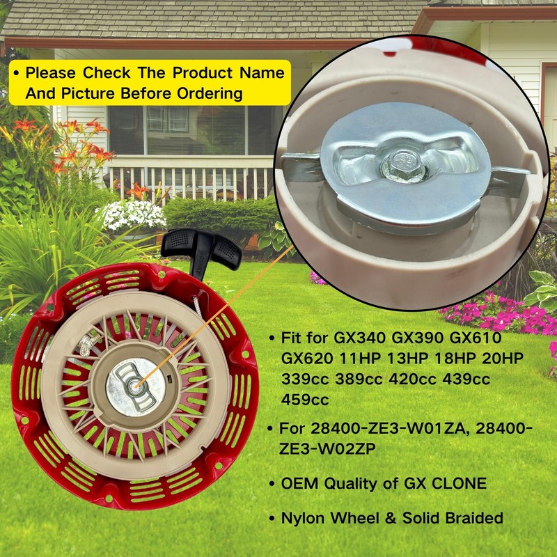 GX340 GX390 Recoil Starter Pull Start Assembly with Pull Cord for Honda and Clones 339c 389cc 420cc 439cc 459cc Red 28400-ZE3-W01ZA for Pressure Washers Generators