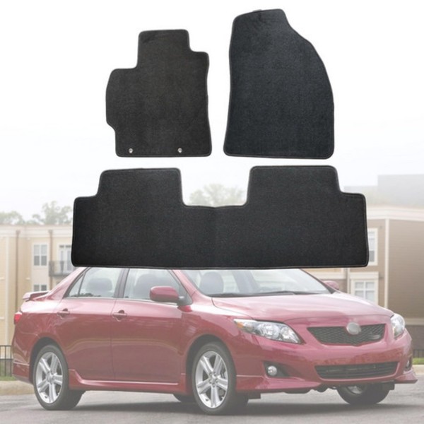 GXARTS 3 PCS Front and Rear Velour Replacement Floor Mats Carpet Black Compatible with Toyota Corolla 2009 2010 2011 2012 2013