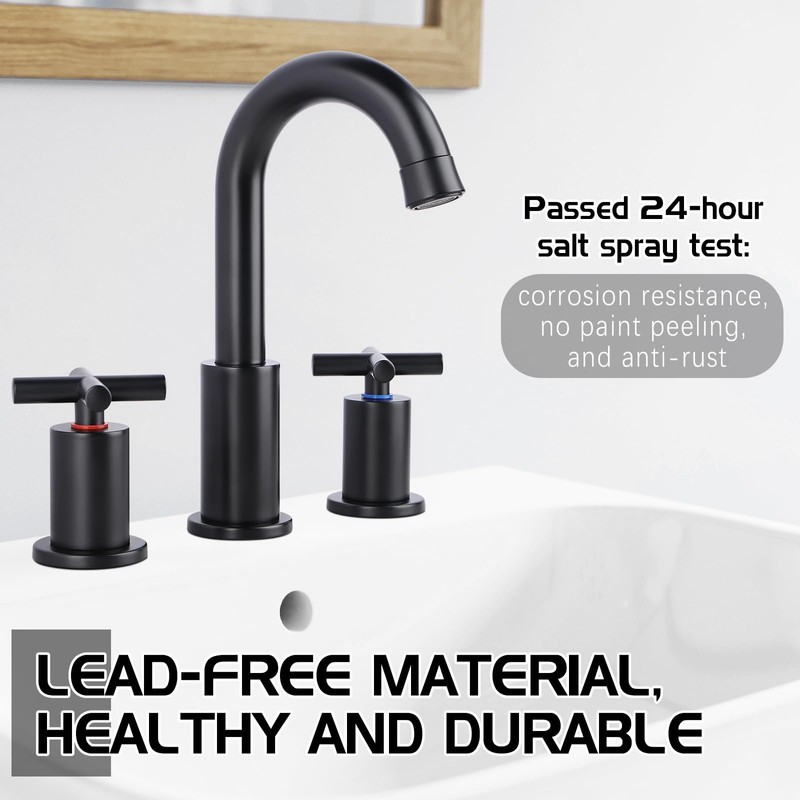 - 【8 INCH WIDESPREAD BATHROOM SINK FAUCET】: The main body of the bathroom sink faucet is made of durable stainless steel.Corrosion resistant. Lead -free material, healthy and durable.