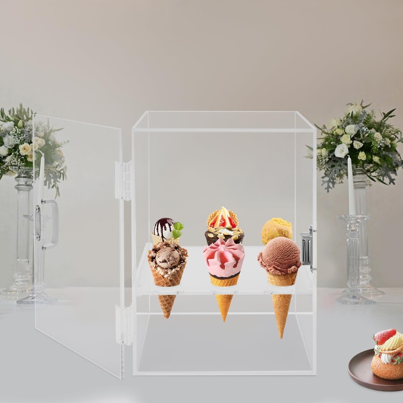 • 【Door Design】The door of ice cream cone stand is designed with acrylic handle and magnetic latch closure, which isolates dust.