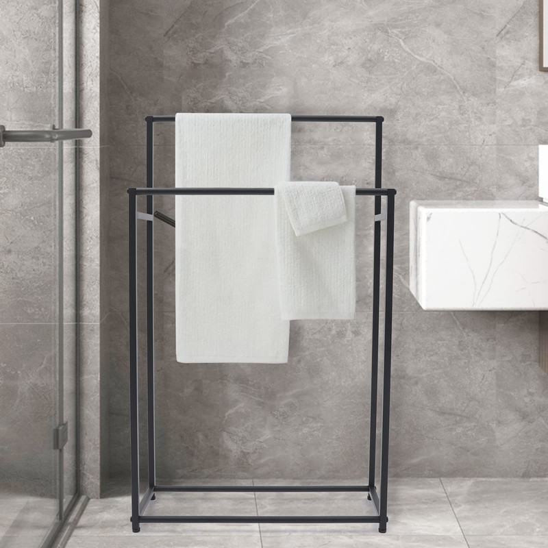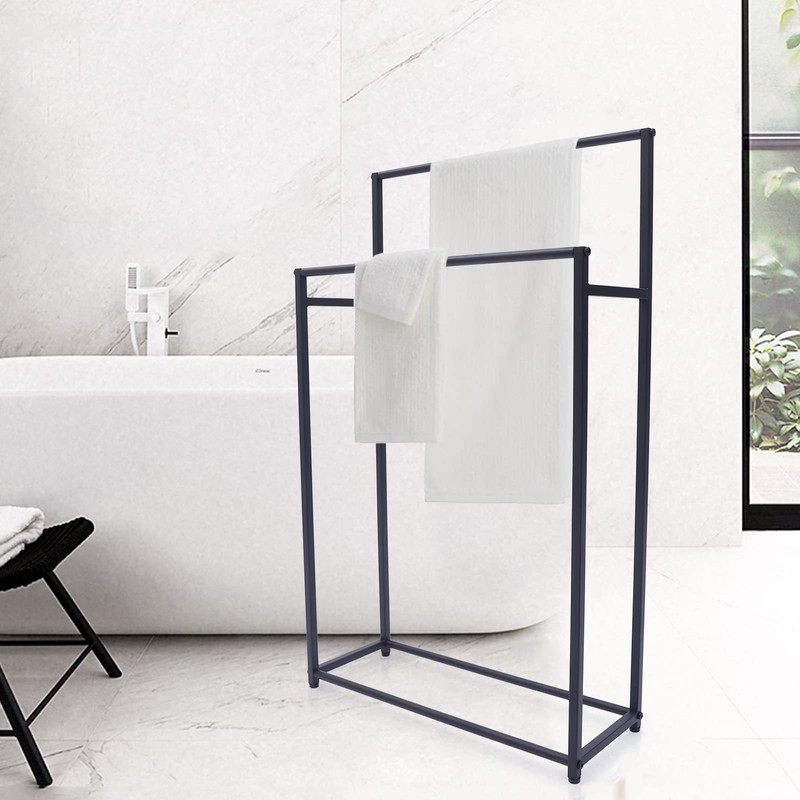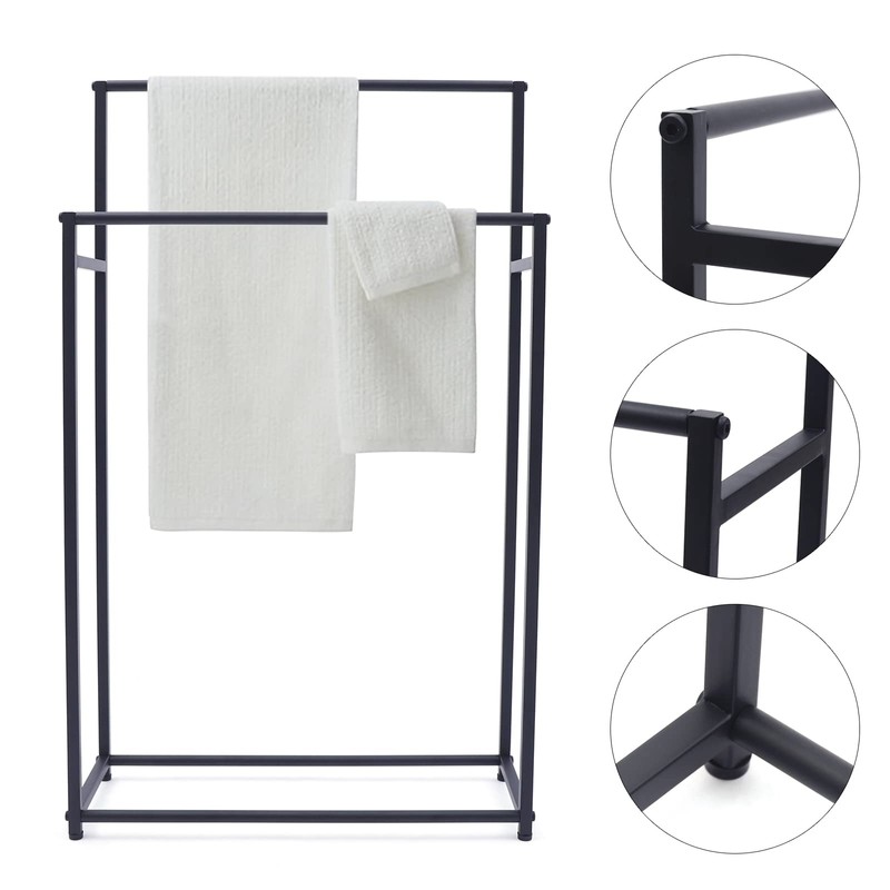 GXFCHYL Free Standing Towel Rack Black Blanket Rack Holder 2 Tier Towel Rack ...
