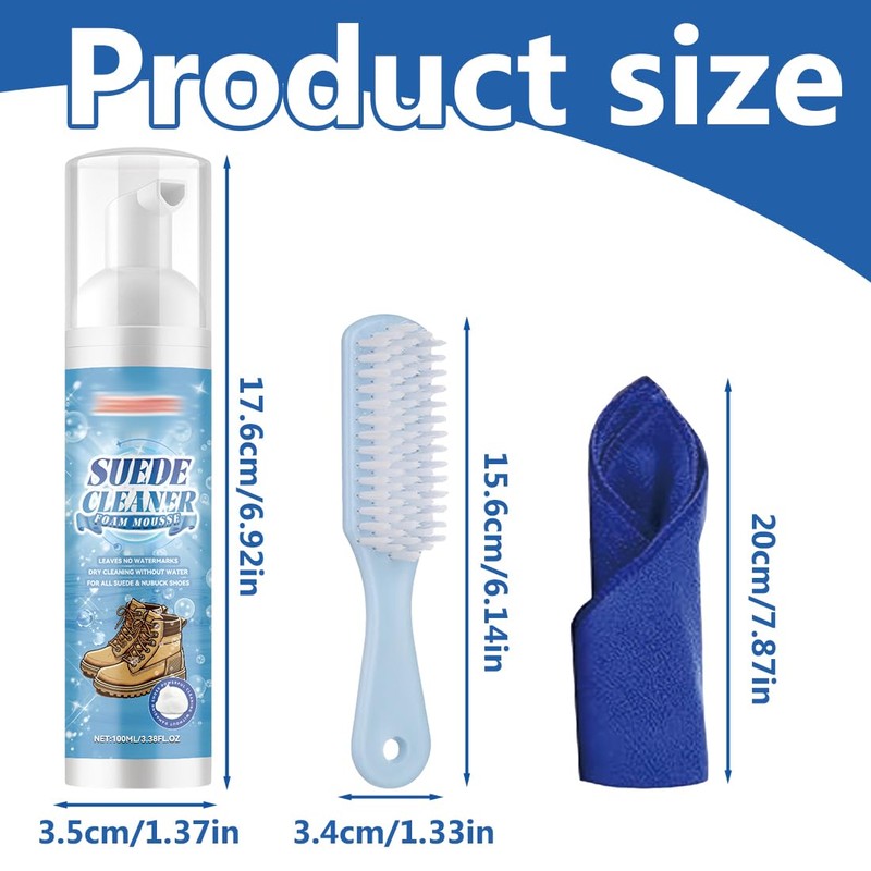 - Value Cleaning Kit: Unser Schuhreinigungsset enthält eine Flasche Wildlederschaumreiniger für mehrere Anwendungen. Es wird auch mit einer speziellen Wildlederbürste und einem Mikrofaserhandtuch geliefert, um Ihre Schuhe vollständig zu pflegen. Alles, was Sie tun müssen, ist, mit einer weichen Bürste vorsichtig Staub von der Oberfläche zu entfernen, mit der richtigen Menge Reinigungsmittel zu sprühen, vorsichtig mit einer Bürste abzuwischen.