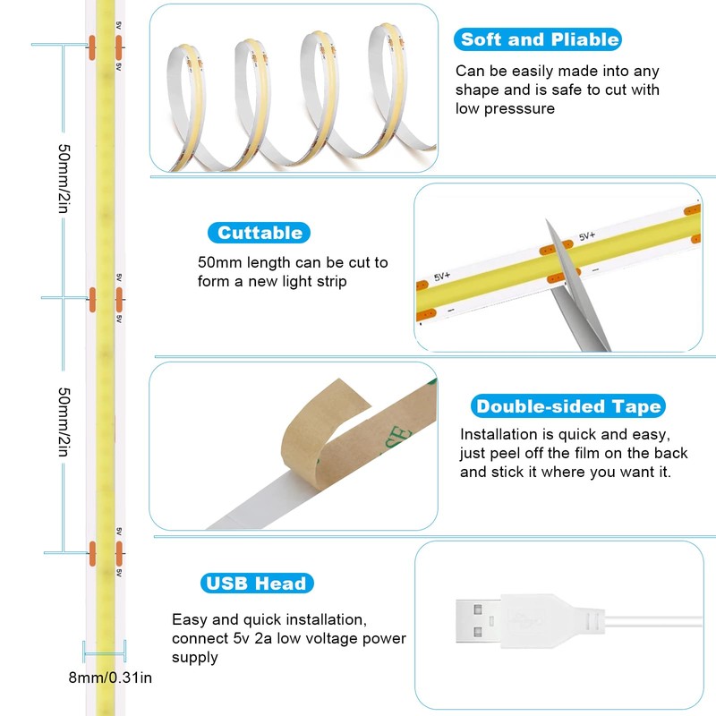 - Endless Lighting Possibilities: Transform any space with our usb led strip—ideal for TV backlighting, under-cabinet tasks, bedroom ambiance, DIY crafts, closet lighting, photography fill light, gaming setups, RV interiors, holiday decor, and even bicycle decoration lights; flexible, cuttable, and USB-powered for hassle-free customization