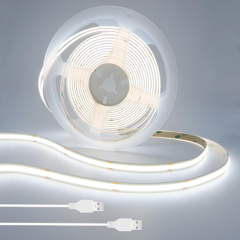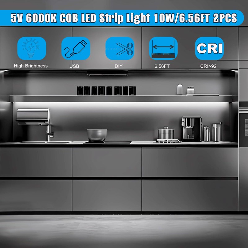 GXILEE 5V USB COB LED Strip Light, 6ft CRI 93+ 6500K Bright White LED Tape Light for TV Backlight, Cabinet & Bedroom DIY Projects, Flexible, Cuttable & Linkable, 2 Pack